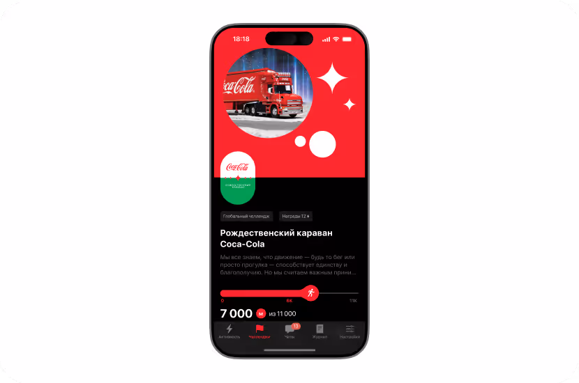 Всего за 25 дней «Рождественский караван» Coca-Cola объединил 1 500 участников, которые вместе прошли 65,9 миллиона шагов. При этом мы отметили значительный рост продуктивности сотрудников!